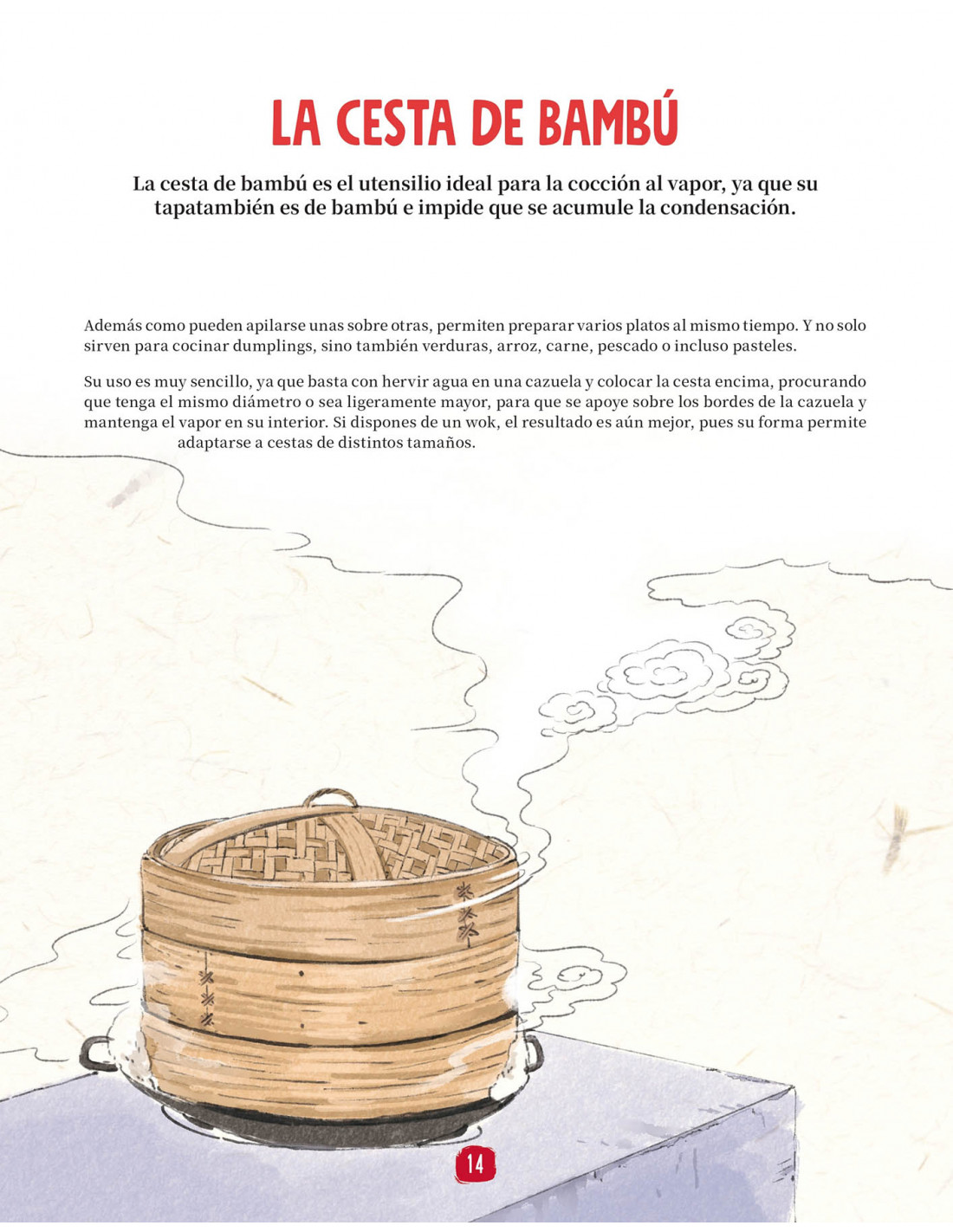 A lo largo de sus páginas encontrarás más de 60 recetas auténticas y accesibles: fideos de arroz salteados con ternera, hot pot de setas para compartir, dumplings, rollitos de primavera crujientes, sopas reconfortantes, pasteles esponjosos al vapor y muchas otras especialidades. Todas ellas explicadas paso a paso y acompañadas de ilustraciones que ayudan a comprender técnicas, gestos y utensilios como el wok o la vaporera de bambú.