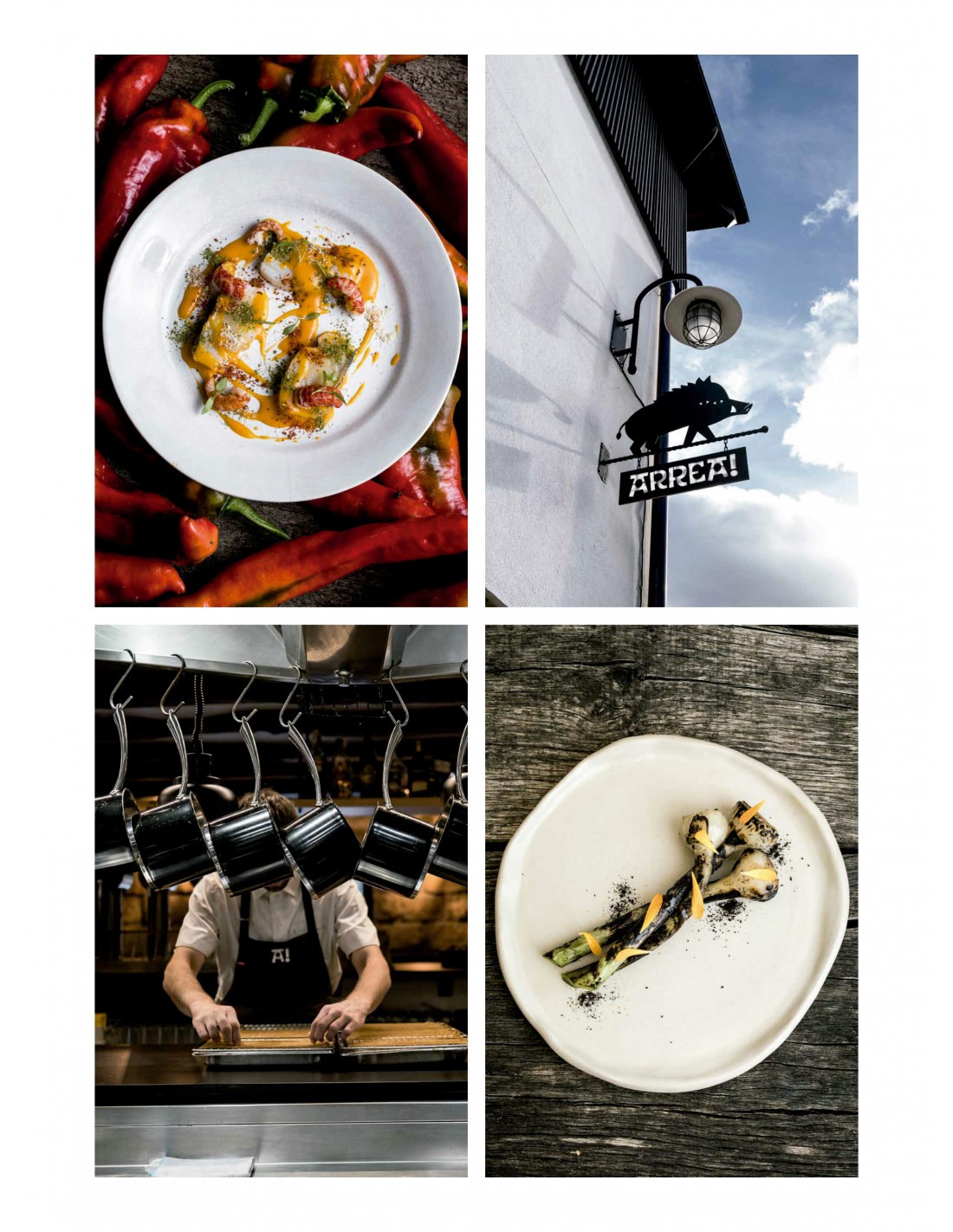 Desde los pequeños platillos que componen el almuerzo con el que abre su menú degustación —como su queso del hortelano, aranes y miel, los caracoles guisados o los morritos fritos de jabalí— hasta los pases principales que beben de lo mejor que ofrece la montaña alavesa y las aguas que la atraviesan —cocochas de trucha, trompetas negras y tocino de río, el corzo camuflado o el girasol a la parrilla— pasando por los aceites, encurtidos y fermentados que laten en su cocina, el libro de Arrea! se convierte en una obra de referencia para comprender la nueva cocina rural contemporánea.